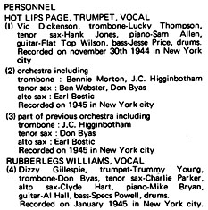 On SIDE 1: Six recordings by Oran "Hot Lips" Page