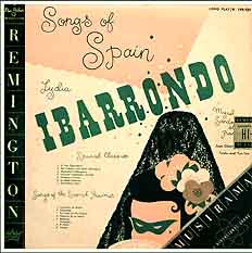 The covers of R-199-171 and R-199-179 (reissued on Vox Records STPL 513 430) of guitarist Carlos Montoya state "Recorded in Spain". Could be that the recordings were made when Laszlo Halasz was on tour and conducting in Barcelona, and could be that Montoya who lived in the US was vacationing in Spain at the time. One is not always sure if "Recorded in Europe" or in this case "Recorded in Spain" is in all cases correct. The recordings could have been ready tapes or new recordings. In any case the annotation "Recorded in Europe" was often an easy way to avoid questions by the officials of the union. I do not have a copy of the other record of Carlos Montoya (R-199-134) accompanying mezzo-soprano Lydia Ibarrondo. This album most likely was recorded in the USA. In any case Ibarrondo's "Songs of Spain" (R-199-139) was recorded in the USA as she lived there. On the latter the mezzo-soprano was accompanied by Miguel Sandoval (piano), and Juan Oñatibia (txistu and tun-tun, on side 2). The selections are El vito,Del cabelo ma´s sutil, Molondron, Cancion Castellana, Cantares, La maja dolorosa. Granadina, Caminito de Avilés, Charrada, En casa del Tio Vicente, Pastores de la Sierra, Burlesca, Nostalgia, El pano, Vescos. Cover
