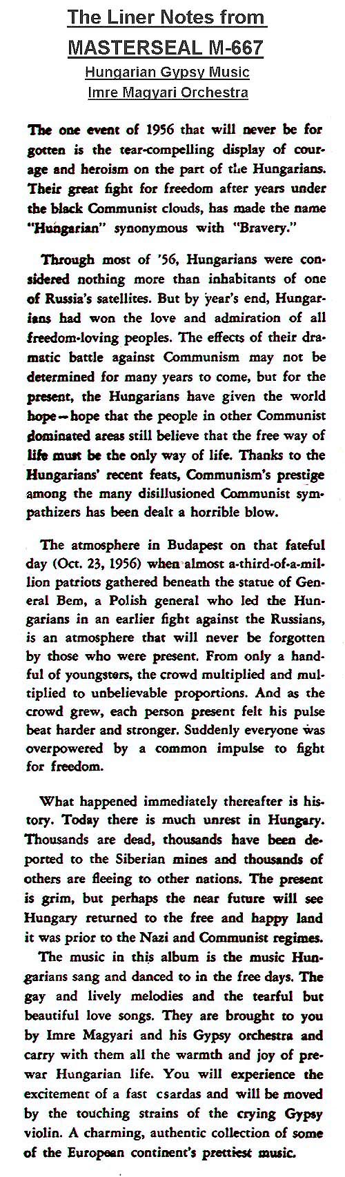 The liner notes reminded many Americans, and not only those of Hungarian descend,