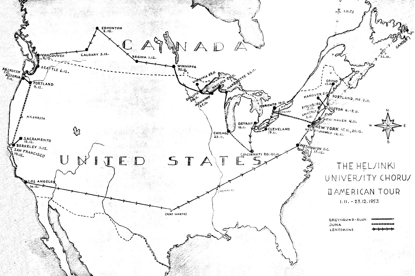 Laulajat - Second American Tour - 1 November - 23 December, 1953